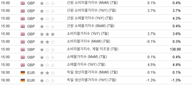• 8/20 (오늘): 영국 소비자물가지수 (CPI)