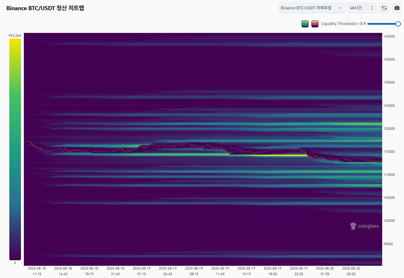 특히 114K 구간에 유동성이 집중되어 있어, 단기적으로 이 구간 테스트 가능성이 높습니다.