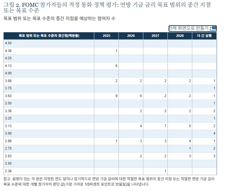 • 점도표: 10월·12월 추가 인하 → 올해 총 3회 인하 전망