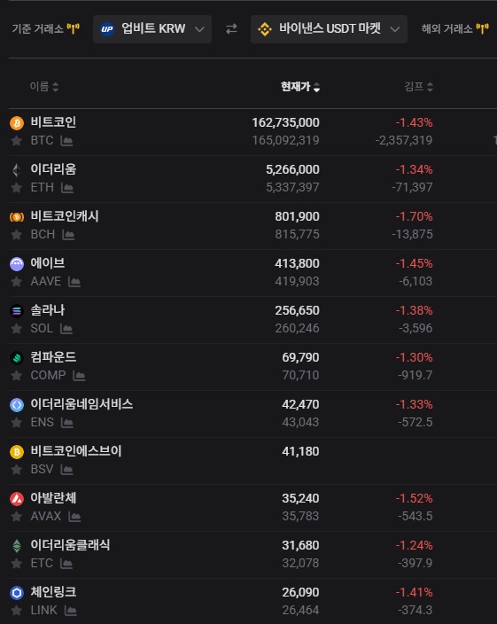 • 업비트 BTC: 162,735,000원 / 바이낸스: 165,092,319원