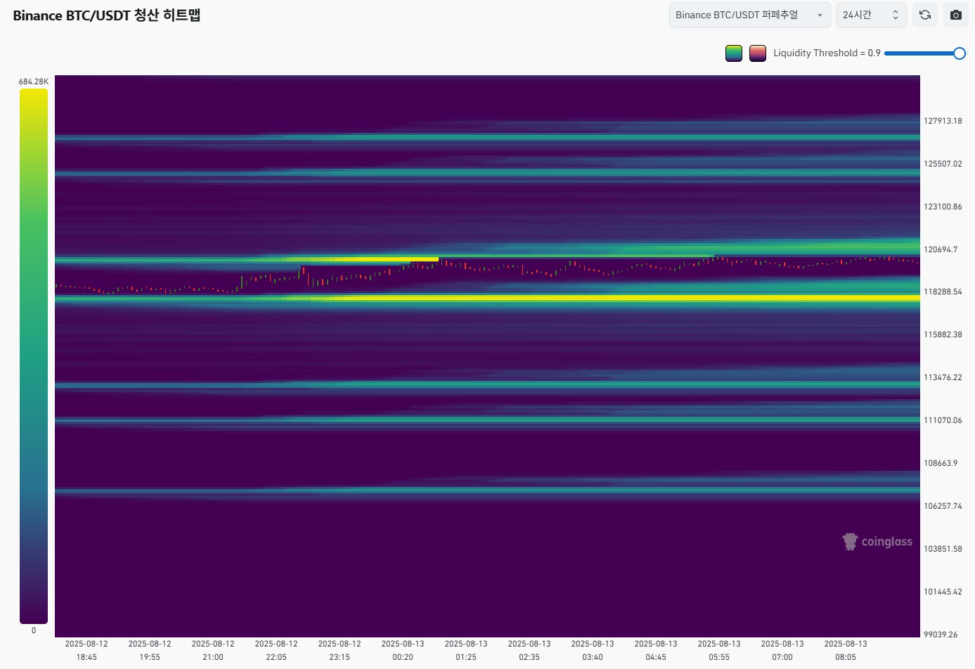 - 상단 유동성 자석: $121.6k / $126.8k / $131.9k 부근(가격이 당겨지는 지점).
