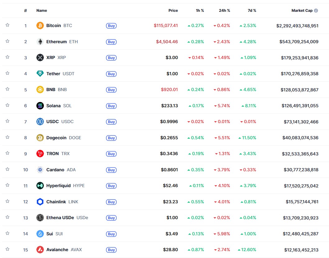 - 시총 100위 이내 메이저 코인