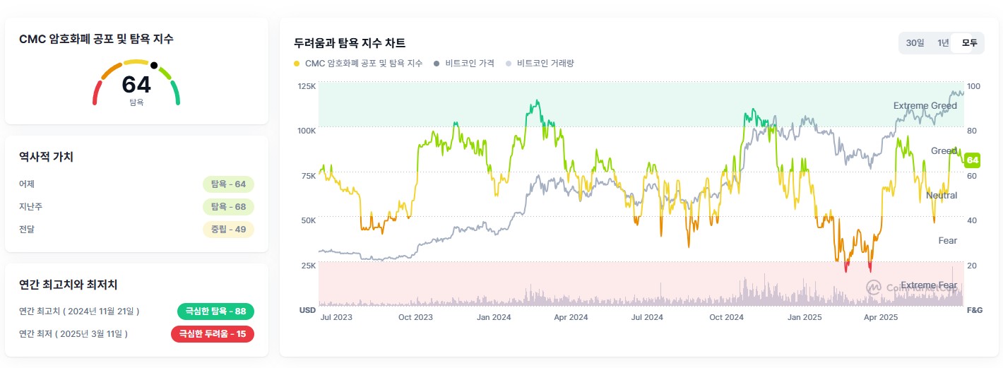 😨 공포탐욕지수: 64 (탐욕)