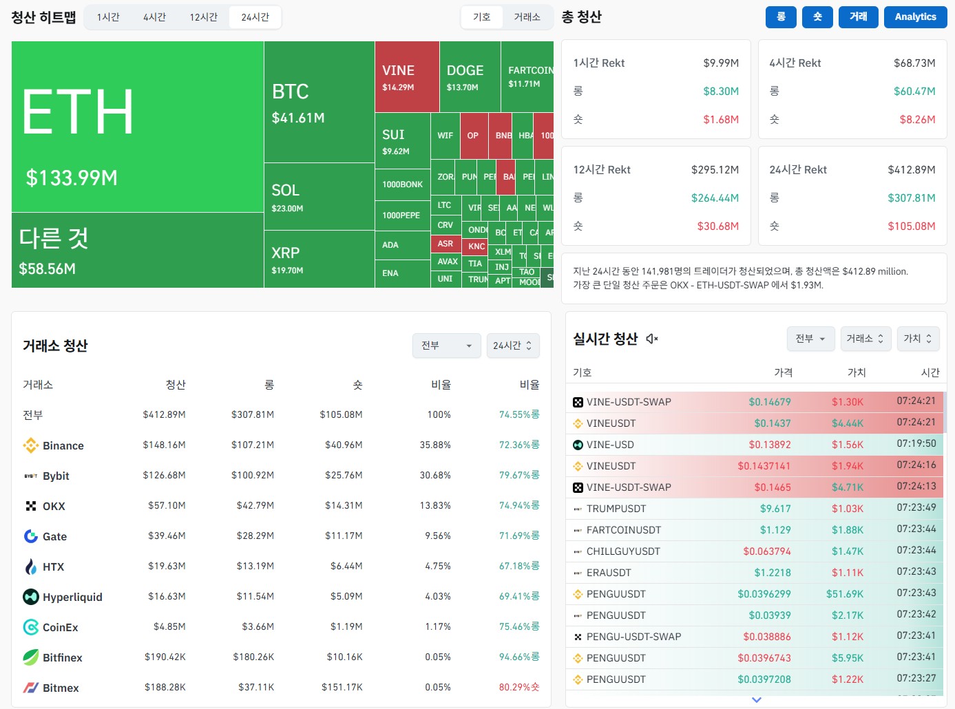 - 최대 청산 거래소: Binance > Bybit > OKX